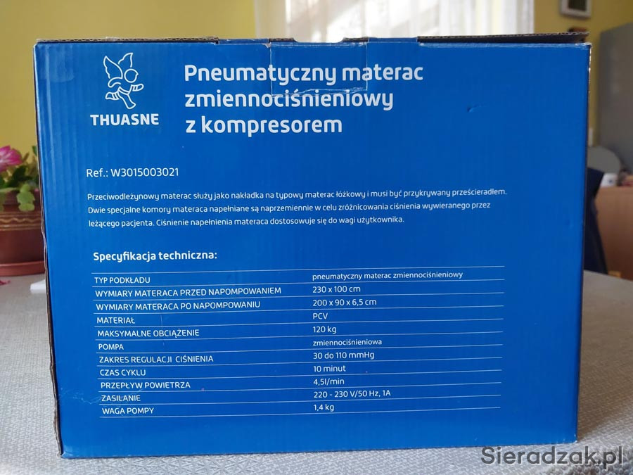 Sprzedam pneumatyczny materac zmiennociśnieniowy z kompresorem (z pompą automatycznie regulującą ciśnienie).