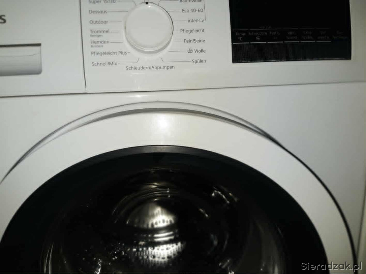Używana pralka Siemens z gwarancją na 8 kg wsadu,dwu-letnia, wyprodukowana na rynek zachodni, energooszczędna, stan bardzo dobry,mało używana, mały pobór wody - okazja; dowóz.