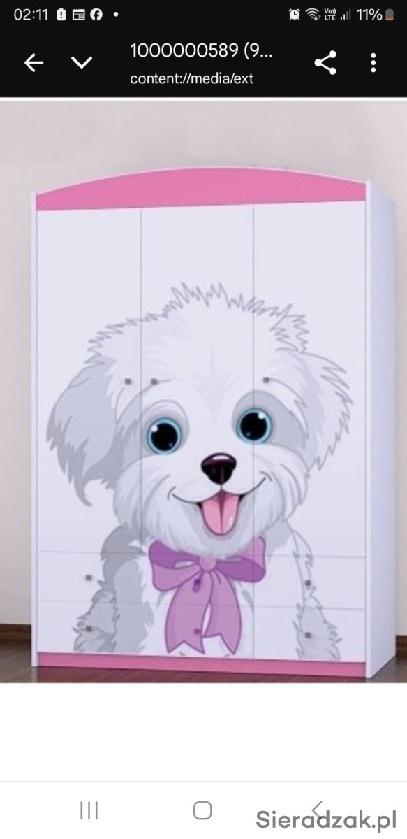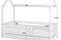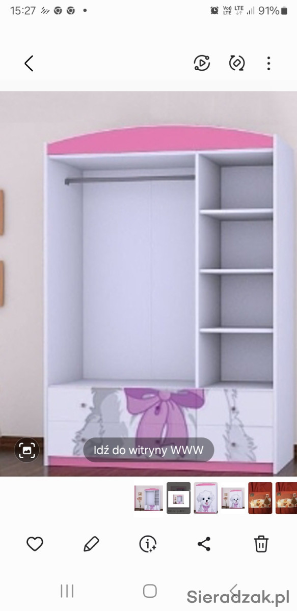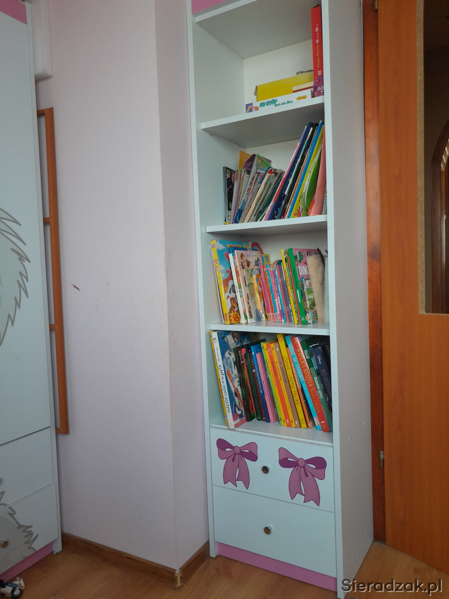 Sprzedam Zestaw mebli dla dziewczynki szafa, regał, szafka nocna, lozko domek białe z materacem i szufladą. Wszystko w stanie bardzo dobrym. Wymiary szafy i łóżka na zdjęciach. Istnieje możliwość transportu oraz sprzedaży samego łóżka lub samych mebli.