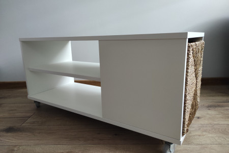 Sprzedam biały stolik kawowy na kólkach w stanie idealnym! Jest nowy, tylko po prostu już złożony. W ogóle nieużytkowany, gotowy do używania, ale jednak podczas remontów zmieniła się koncepcja, a stolik się marnuje, więc komuś na pewno się przyda. Wymiary: 91x37 cm. Pełne wymiary są na jednym ze zdjęć. Maks. obciążenie blatu stołu to 20 kg.