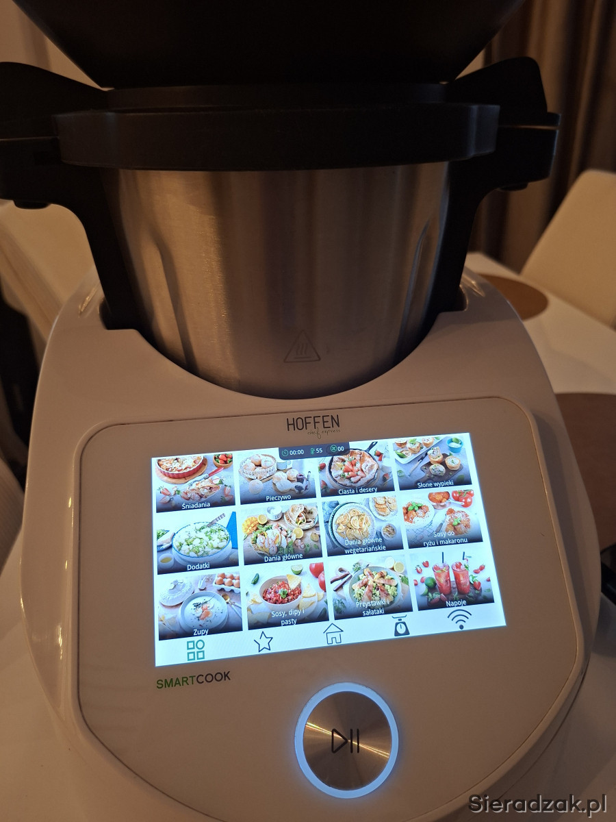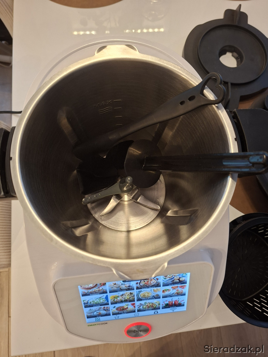 Robot kuchenny Smart to nowoczesne i wielofunkcyjne urządzenie, które wzbogaci Twoją kuchnię. Robot posiada 5 automatycznych programów do przygotowania powideł, zup, gotowania na parze, wyrabiania ciast. Dzięki dużej ilości obrotów z łatwością miksuje, sieka i rozdrabnia składniki, emulguje, wyrabia ciasto. Możesz wykorzystać go do ważenia i podgrzewania. Robot posiada 10-stopniową regulację prędkości z funkcją puls oraz regulację temperatury od 30 do 120 C. Kolorowy dotykowy wyświetlacz ułatwia obsługę urządzenia. Możesz nim sterować wygodnie także przez aplikację mobilną. Znajdziesz w niej ponad 220 przepisów z czytelną instrukcją, a kolejne pobierzesz przez Wi-Fi. Dzięki aplikacji przygotujesz tez listę zakupów oraz zaplanujesz różnorodne menu.