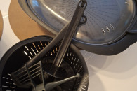 -W zestawie: zestaw do gotowania na parze: naczynie płytkie, głębokie i pokrywka, pojemnik o całkowitej pojemności aż 5 litrów i pojemności roboczej 3 litry, łopatka (nosi śladyużytkowania, stan dobry), łopatka do wybierania kremów (nowa), motylek do ubijania(nieorginalny), koszyk do gotowania w wodzie i na parze.