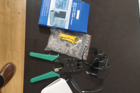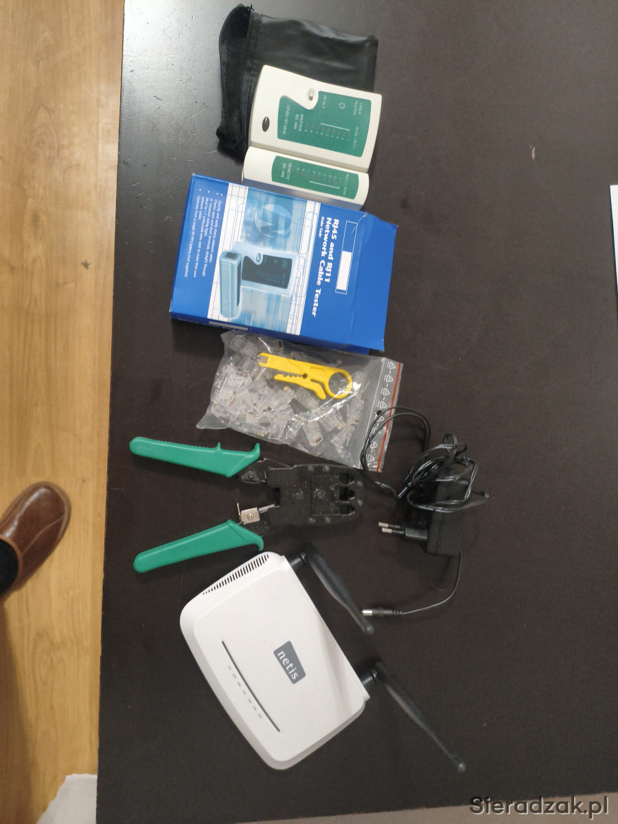 Zestaw używany router Netis WF2419I, zaciskarka kabli RJ, tester, nożyk i końcówki. Idealny do domu lub biura. Sprawny i łatwy w użyciu. Niezbędny zestaw dla osób zajmujących się sieciami. Lub do domowego użytku, ja tego zestawu potrzebowałem aby uczyć się na egzamin w technikum informatycznym.