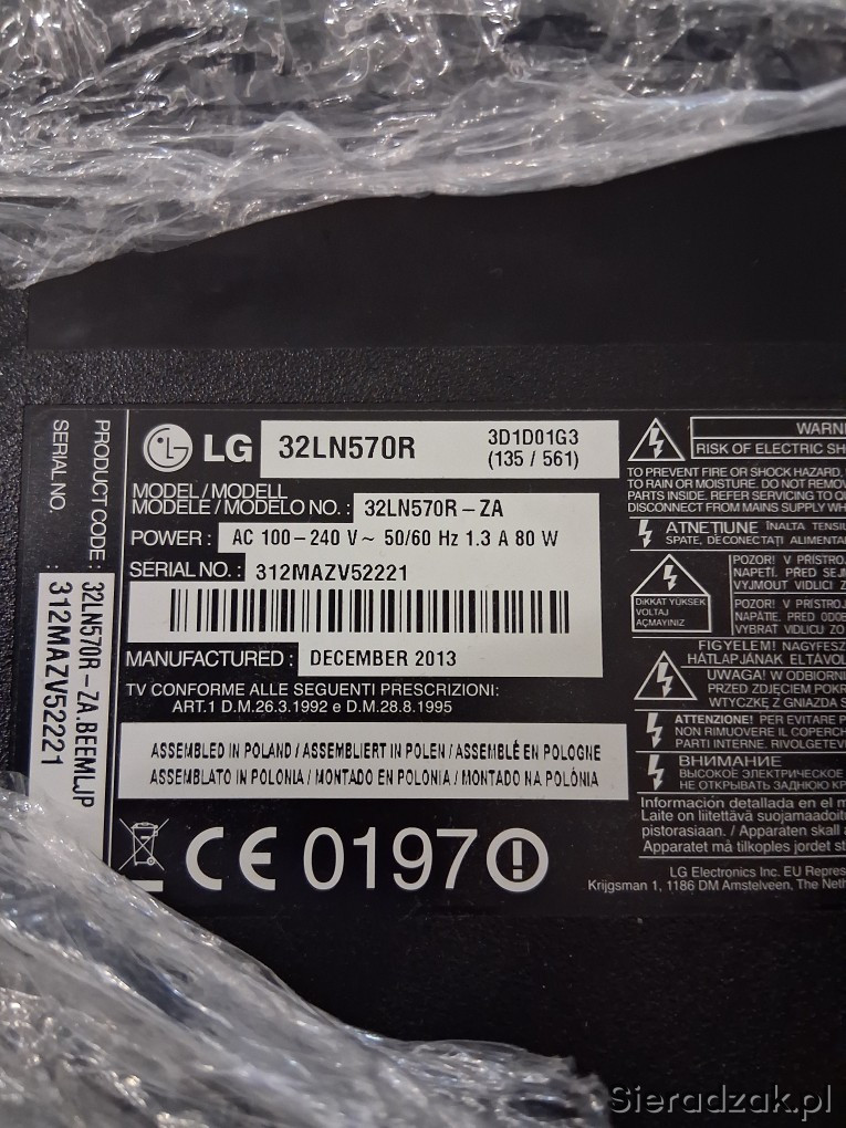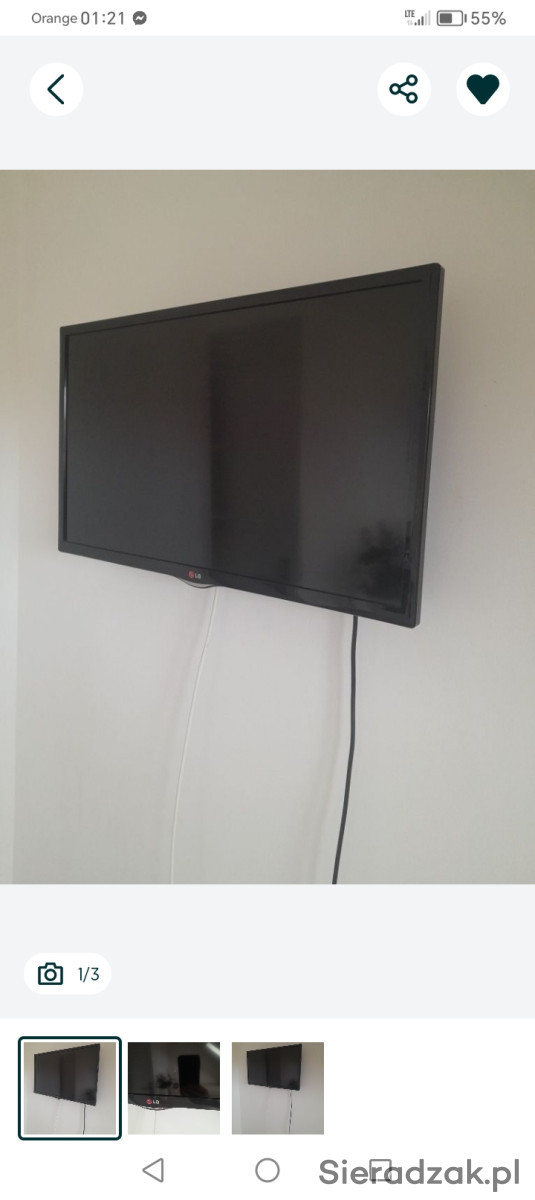 Witam mam do sprzedania telewizor Led lg 32 w dobrym stanie z pilotem i uchwytem ściennym. Brak podstawki. Więcej informacji pod numerem telefonu 798671754