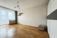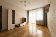 - salonu z wyjściem na balkon typu loggia. W salonie stoi kolejna szafa w zabudowie. Na podłogach parkiet w dobrym stanie, na ścianach tapeta;