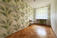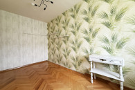 - pokoju sypialnianego, na podłogach parkiet, na ścianach tapeta.