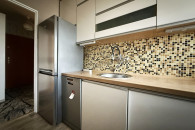 - kuchni, pomieszczenie z oknem, wyposażone w meble w zabudowie oraz wszystkie niezbędne sprzęty AGD: kuchenkę gazową, zmywarkę, lodówko-zamrażarkę. Na podłogach wykładzina, na ścianach tynki ozdobne oraz częściowo glazura;