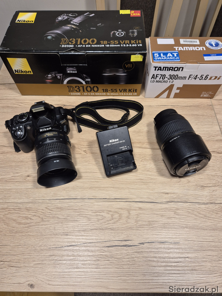 Do sprzedania zestaw aparat Nikon D3100 body z obiektywem Nikon 18-55 VR wraz z dodatkowym obiektywem Tamron AF70-300.