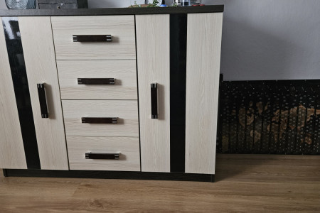 Komoda + witryna w ciepłych kolorach ,pięknie uzupełniają wnętrze pokoju lub salonu.