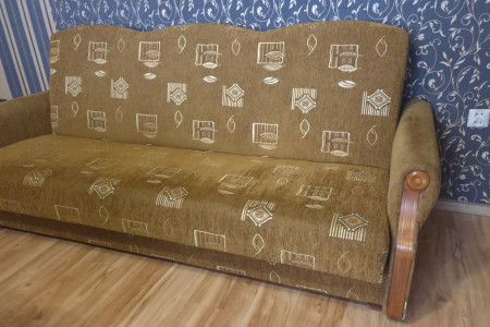 Wygodna, używana sofa / wersalka w brązowym kolorze z geometrycznym wzorem. Mebel jest w dobrym stanie technicznym i może służyć jako funkcjonalna kanapa lub po rozłożeniu pełnić funkcję łóżka do spania - choć nigdy nie w ten sposób nie była użytkowana. Więcej zdjęć, informacji - proszę o kontakt.