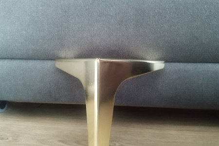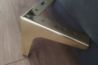 Sprzedam metalowe nogi meblowe w kolorze złotym, wysokość 12.5 cm. Cena za 1 szt/ 15 zł. Dostępna ilość 16 sztuk. Cena za całość 240 zł.