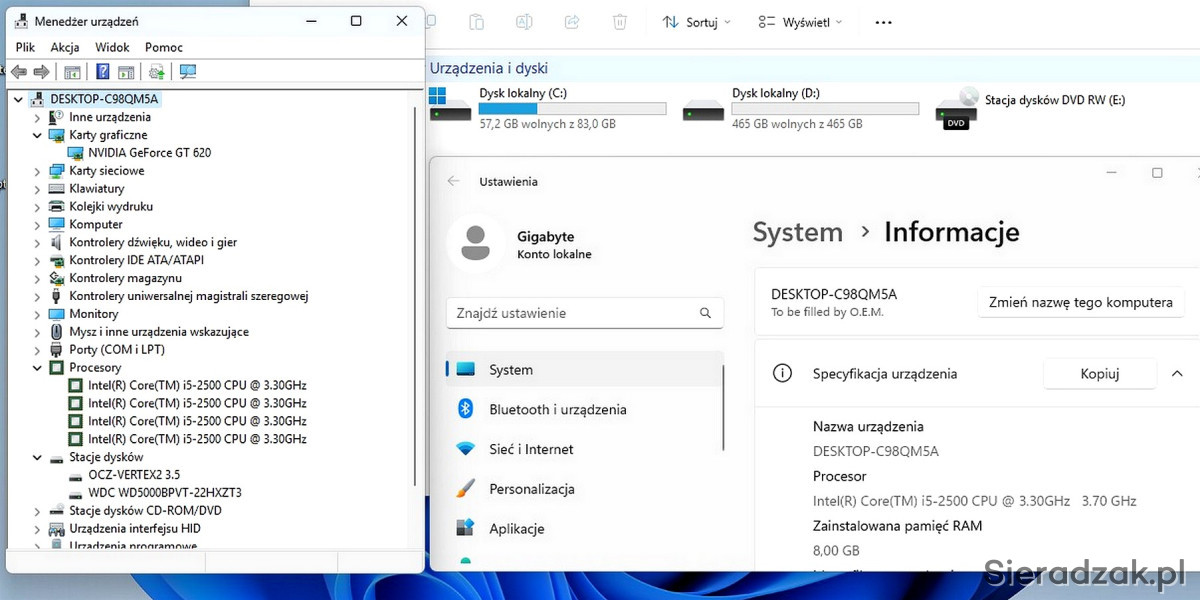 Komputer - i5 2500 - GF GT620 - SSD+HDD - 8Gb Ram -Win11