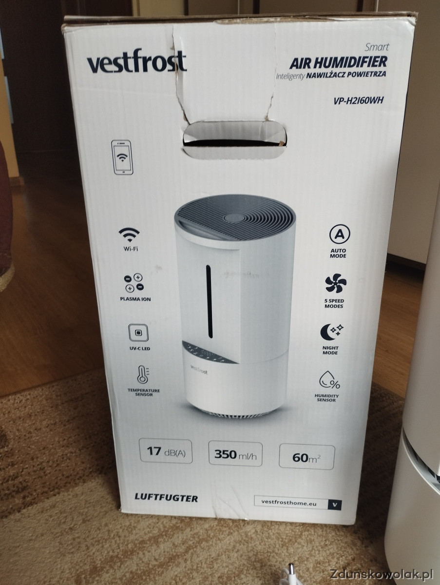 Sprzedam Nowy Inteligentny Nawilżacz powietrza Vestfrost VP-H2I60WH Ewaporacyjny. Posiada.