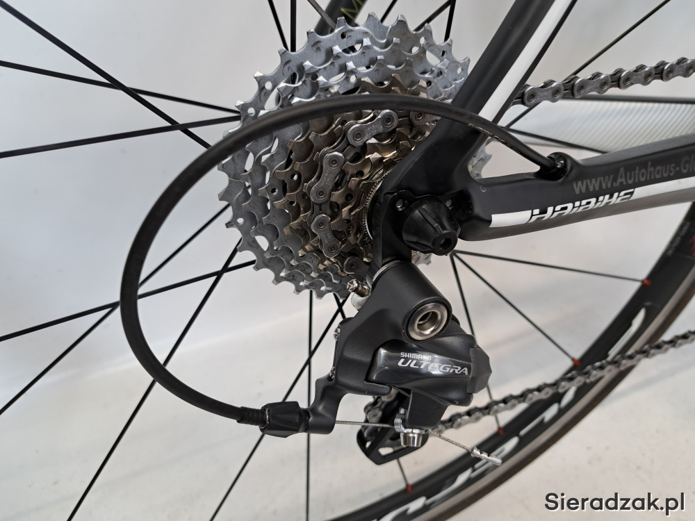 rama carbon 53cm,osprzęt shimano ultegra 6700,korba shimano ultegra 6750,napęd 2x10,opony continental grand prix 700 x 23,obręcze fulcrum racing quattro,sztyca podsiodłowa haibike carbon,siodełko wing flex.stan techniczny i wizualny bardzo dobry.waga 8.14kg.