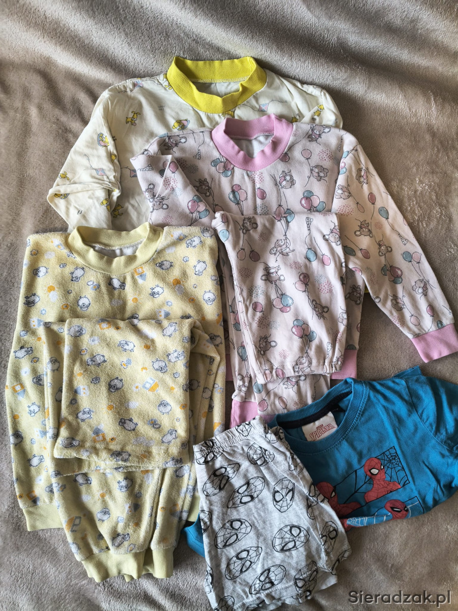 - piżamki: 3x bluzki na długi rękaw,2 x spodnie z długą nogawką - w tym żółre spodenki w owieczki potrzebują wymiany gumki ORAz jeden komplet na krótki rękawek i krótkie spodenki Spiderman rozm. 98/104