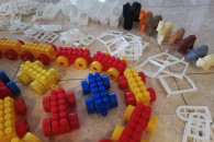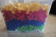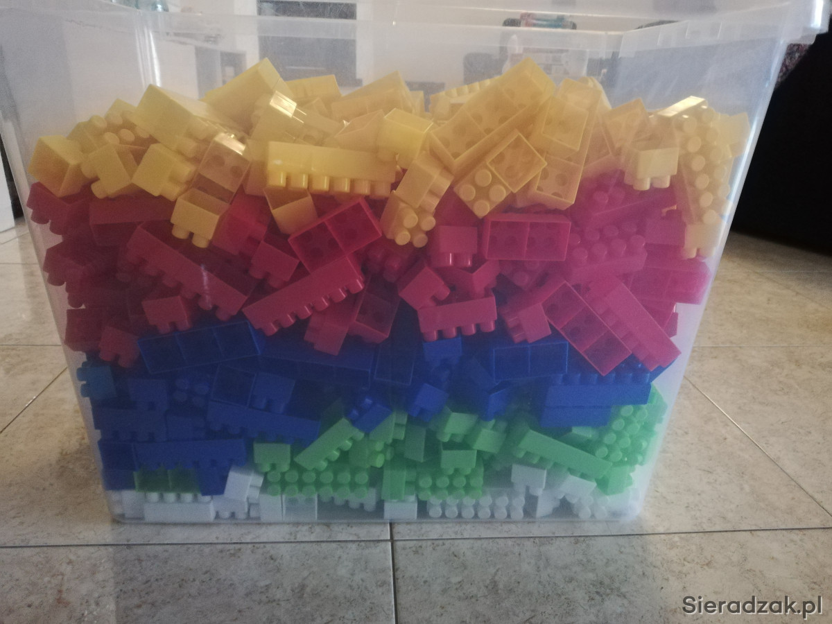Zestaw klocków, ponad 1000 elementów, ok. 6 kg. Marka QULKI. Zestaw zawiera ponad 820 klocków klasycznych i ponad 250 różnych okienek, drzwi, figurek itp. W osobnej torebce kilkanaście sztuk z uszkodzeniami, ale nadają się do zabawy. Przeznaczone dla dzieci w wieku ponad 3 lata. Sprzedaję razem z pojemnikiem. Odbiór osobisty, ponieważ pojemnik jest bardzo duży. Rozmiary pojemnika na zdjęciu.