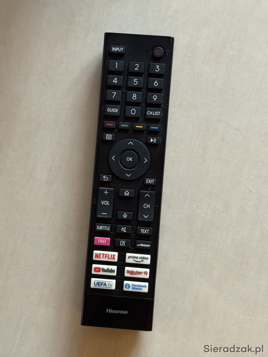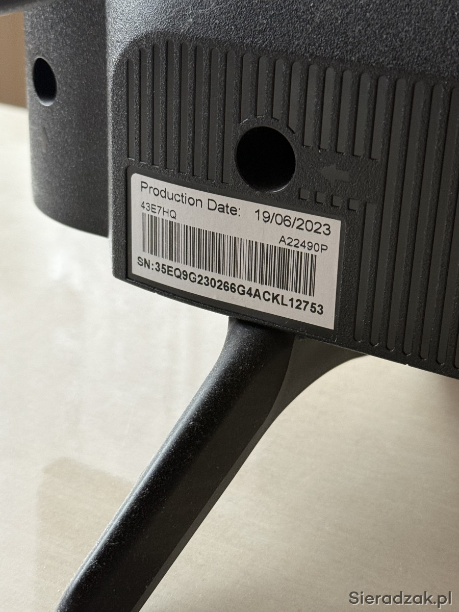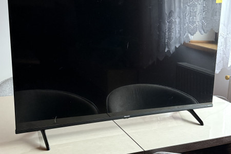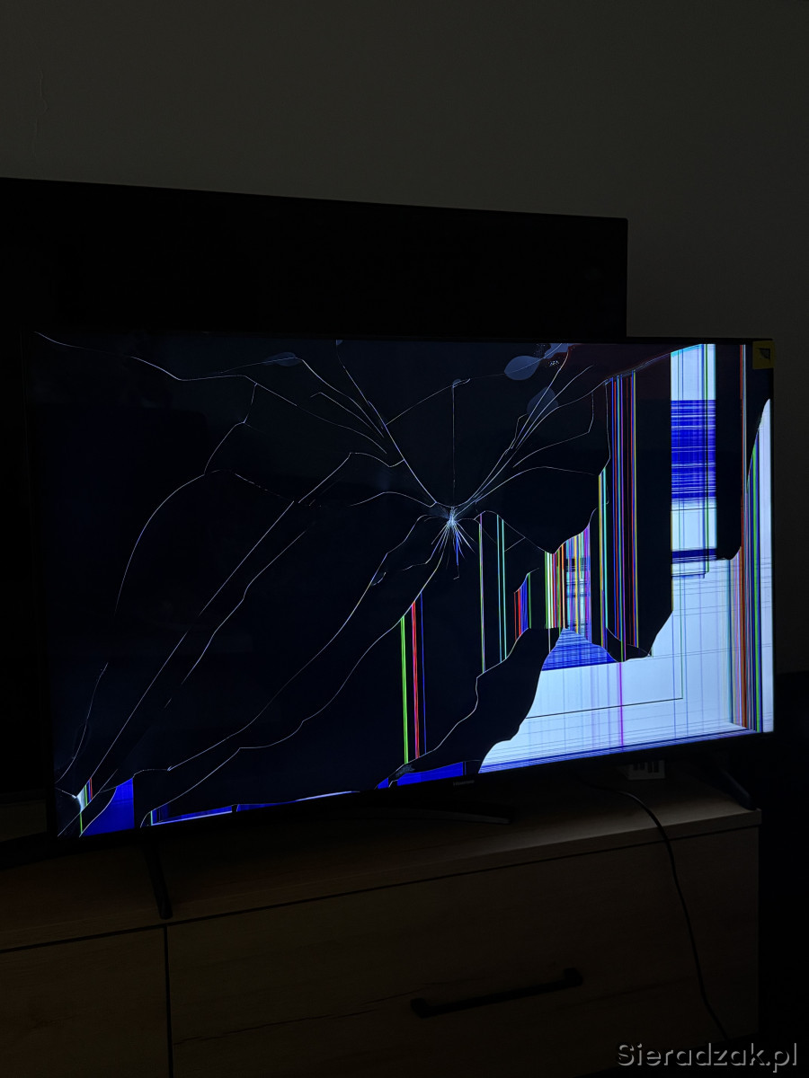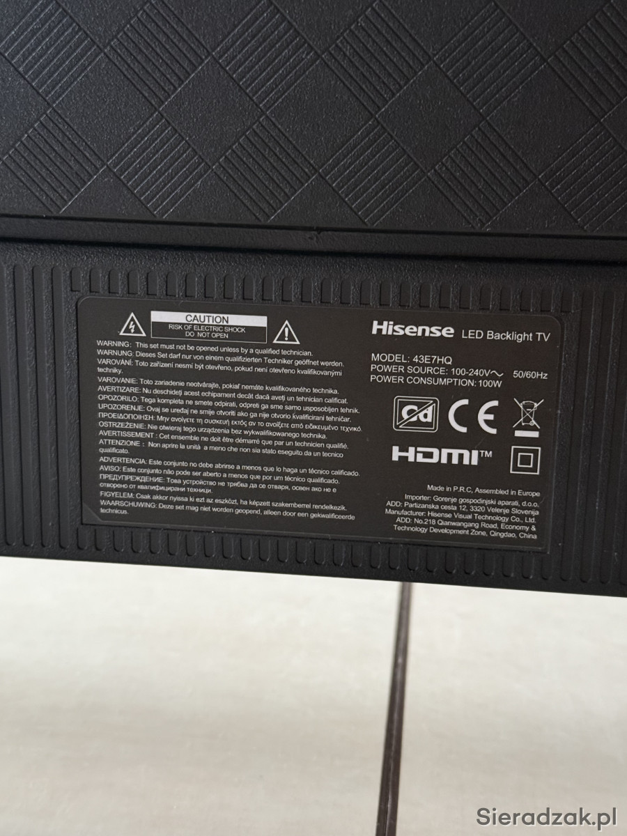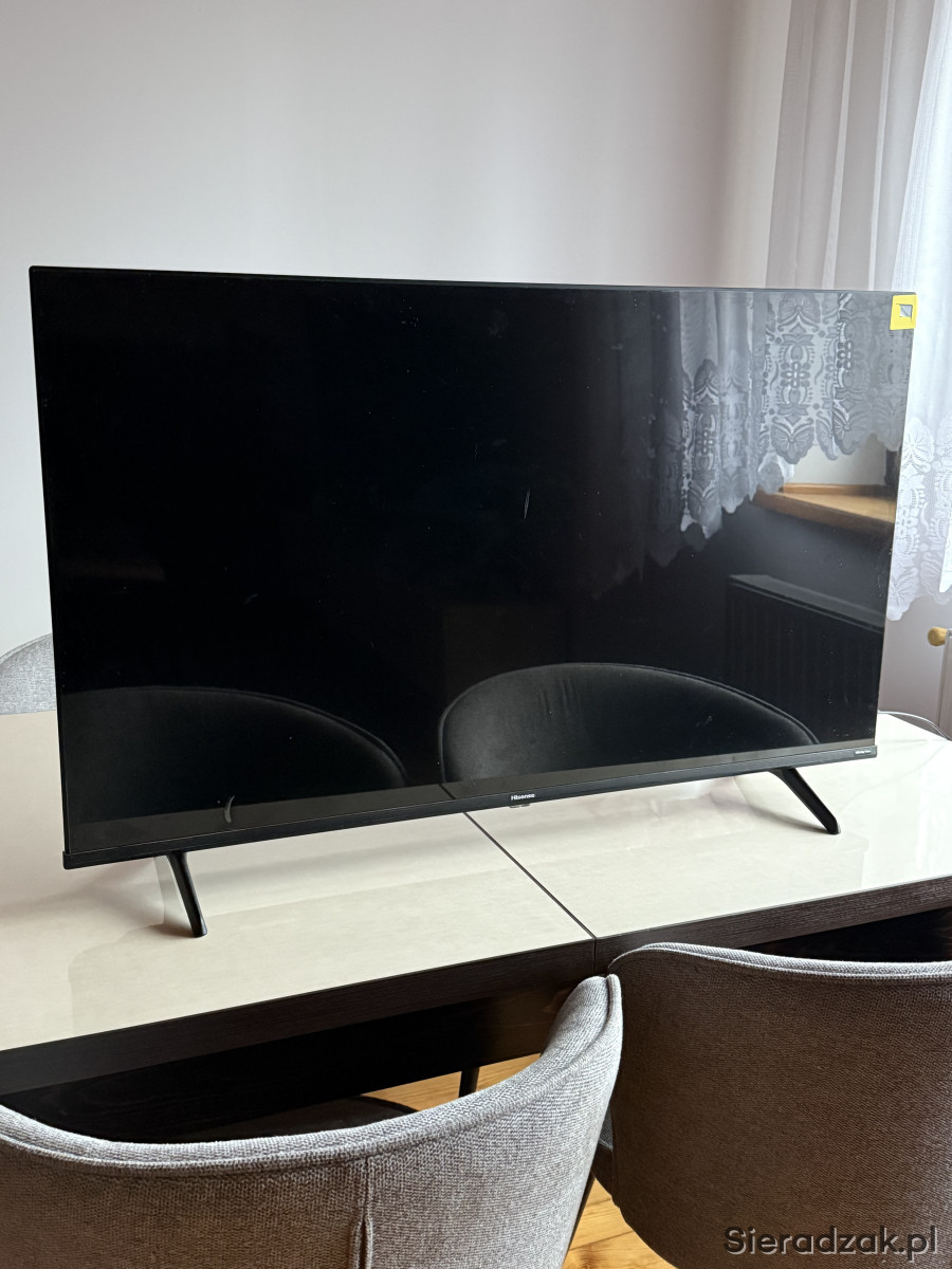 Telewizor marki HISENSE o wielkości 43 cali. Urządzenie jest uszkodzone jak na zdjęciu, głos działa. Sprzedawany w stanie, w jakim widać + pilot.