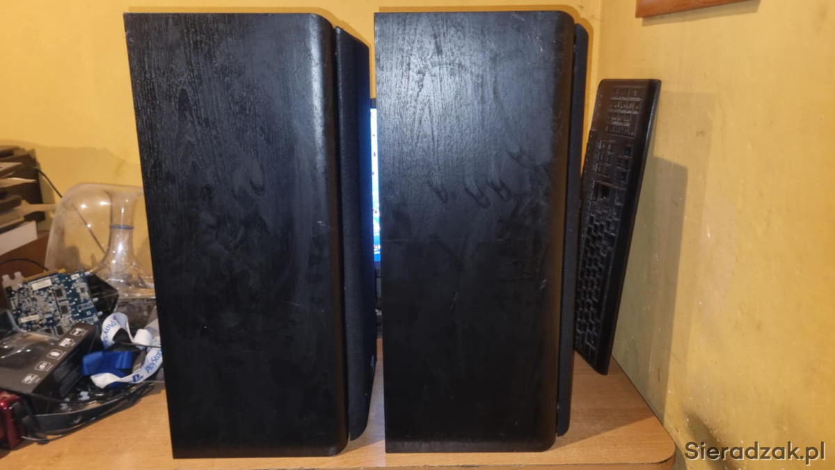 Kolumny sprawne w stanie jak na foto. W jednym głośniku średniotonowym delikatnie wgniecenie kopółki nie ma to wpływu na dźwięk. Polecam.