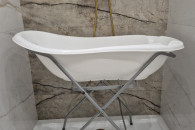 Mam do sprzedania wanienkę razem z rozkładanym stelażem. Jest w bardzo dobrym stanie i na pewno jeszcze komuś może się przydać. Stelaż jest w jednym miejscu delikatnie odpryśnięty (co widać na zdjęciu), ale nie ma to wpływu na użytkowanie. Wanienka służyła tylko i wyłącznie do kąpieli maluszka Zapraszam do kontaktu i zakupu ;)