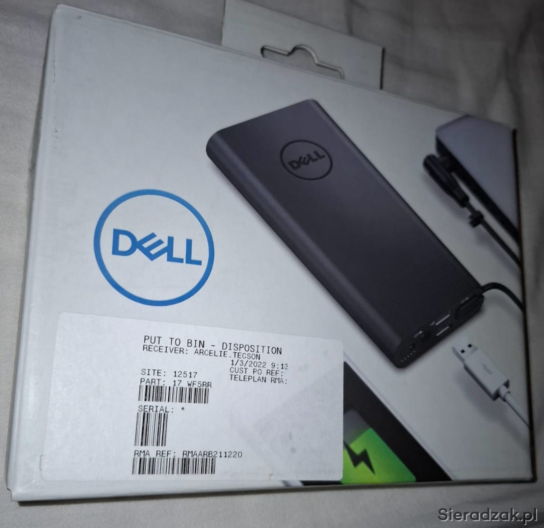 Powerbank do laptopów marki DELL. NOWY, nieużywany. Idealny do ładowania urządzeń mobilnych w podróży lub w pracy. Niezawodne źródło dodatkowej energii.Pojemność 18.000mAh