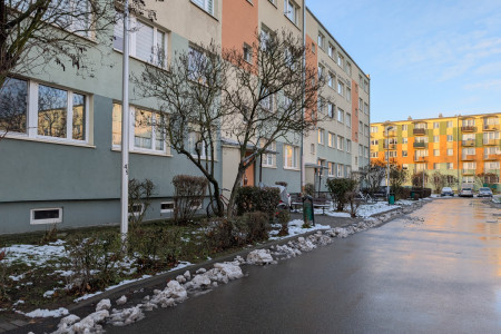 Mieszkanie składa się z dwóch pokoi (salon + mały pokój), kuchni, łazienki i przedpokoju, dodatkowo zapewnione korzystanie z komórki piwnicznej. Lokal przeznaczony jest do remontu. Niewątpliwą jego zaletą jest usytuowanie na parterze, w budynku po pełnej termomodernizacji, zlokalizowanym tuż przy szkole nr 10 z basenem. W bliskiej odległości znajdują się liczne sklepy. Otoczenie budynku bardzo korzystne z miejscami parkingowymi, zielenią i placem zabaw.