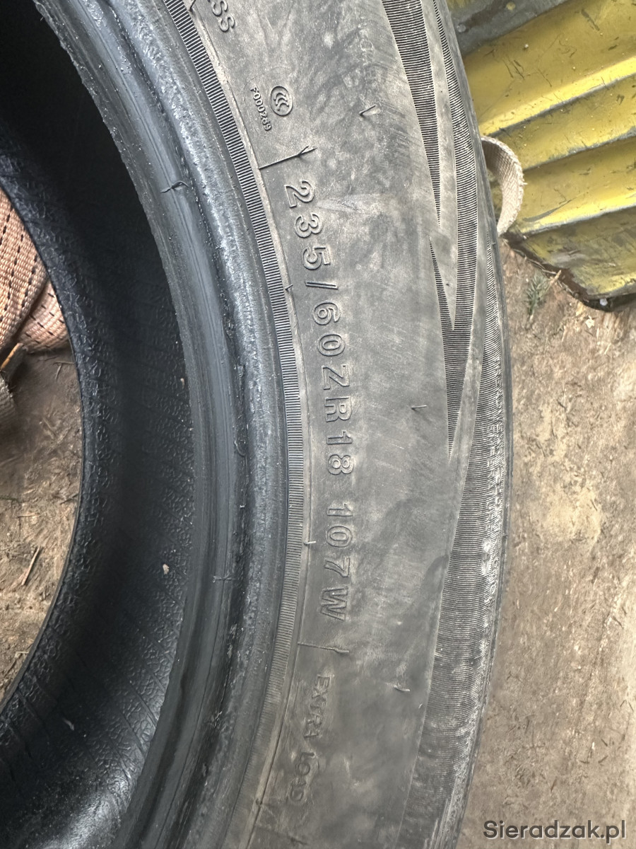 Do sprzedania oferuje opony caloroczne Tracmax as tracsaver w rozmiarze 235/60/18 107w XL. Opony pochodza z mojego auta volvo xc60. Wszystkie opony z rocznika 2023 DOT 2823 i 1823. Jedna opona posiada profesjonalna latke po wkrecie. Wysokosc bieznika opon od 5,5-6,0 mm widoczny na zalaczonych zdjeciach. Odbior osobisty. Zapraszam.