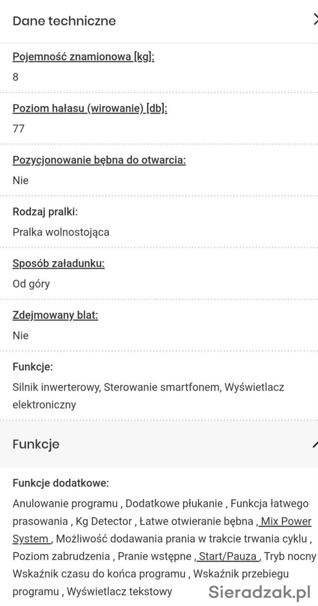Nie tego szukasz? Przejrzyj inne oferty z tej kategorii (RTV, AGD i Fotografia › AGD › Duże AGD › Pralki i suszarki). Możesz też zawsze przejść na stronę główną lub skorzystać z wyszukiwarki. ⊗