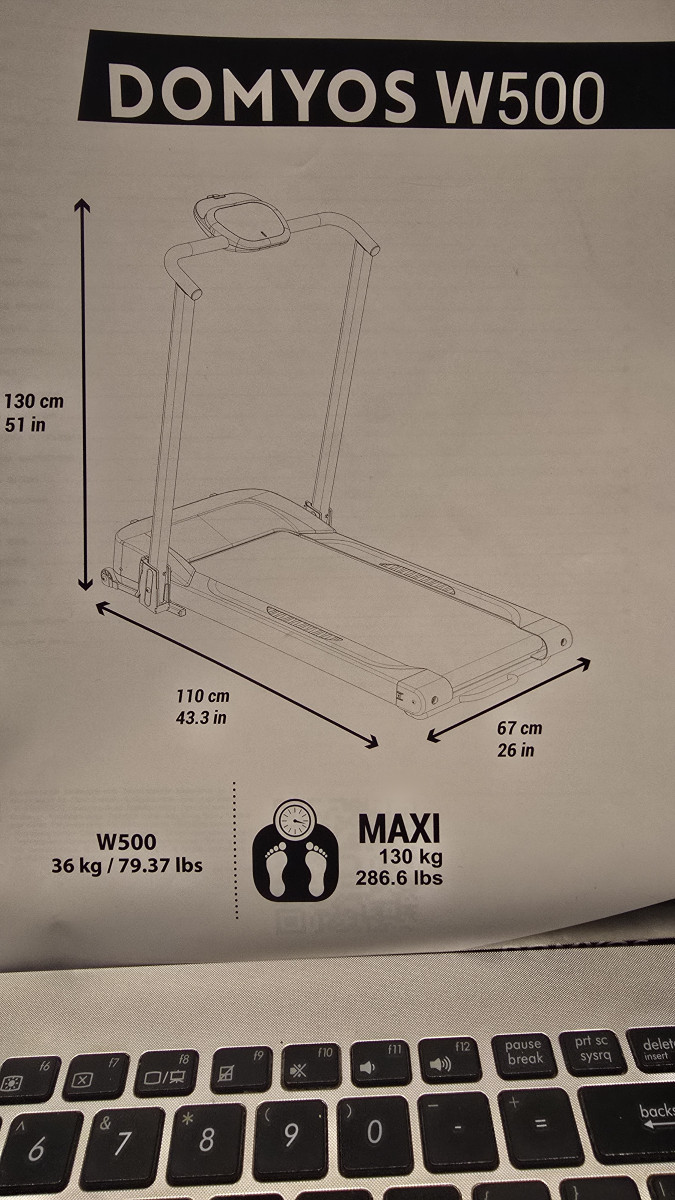Używana, ale w dobry stanie bieżnia Domyos W500, sprzedaje z uwagi na sprawy zdrowotne, bieżnia stoi od 5 miesięcy i się kurzy.
