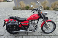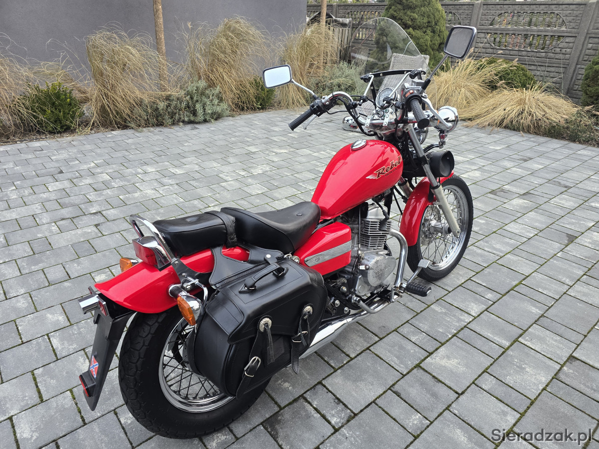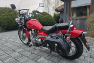 Lakier i chromy w bardzo dobrym stanie. Mechanicznie wszystko w pełni sprawne. Opony i napęd w bardzo ładnym stanie. Honda po dużym serwisie. Wymieniony został olej w silniku, płyn hamulcowy, wyregulowane zawory, gaźnik wyczyszczony w myjce ultradźwiękowej, założone nowe świece i nowy żelowy akumulator. Motocykl dodatkowo wyposażony w sakwy boczne Iron Horse, szybę Puig, piórnik i lightbar. Honda na prawo jazdy kategorii B. Motocykl w pełni sprawny i przygotowany do jazdy bez inwestycji na start. Gratis dodaję pokrowiec na motocykl. Wystawiam fakturę. Kupujący zwolniony z opłaty skarbowej.