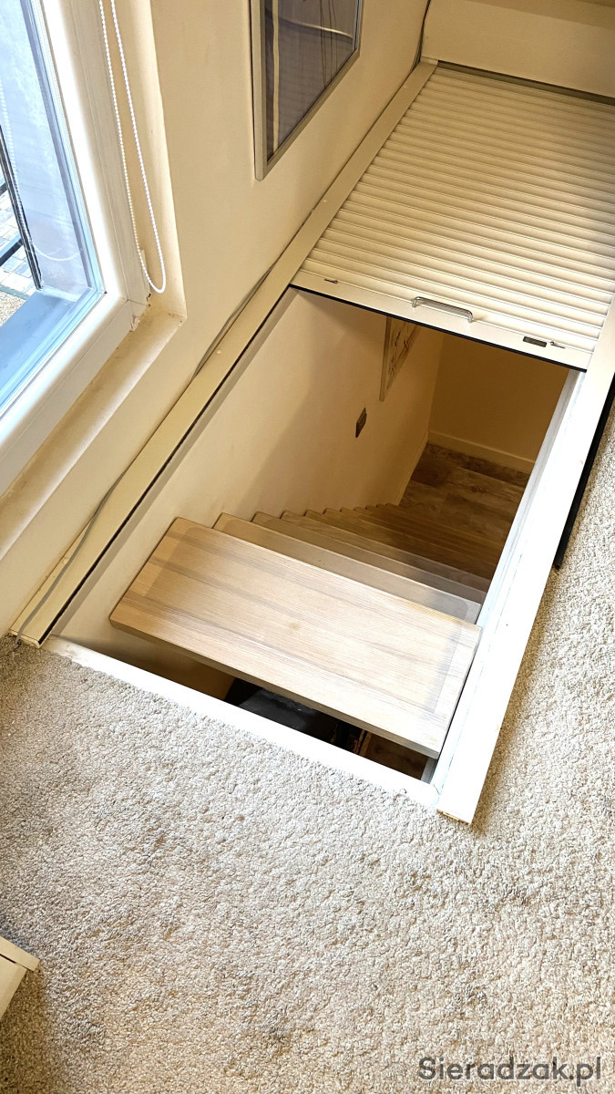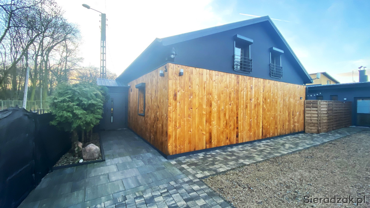 Większy dom o powierzchni ok. 65 m2 oferuje przestronny pokój z aneksem kuchennym, łazienkę, przedpokój a sypialnię zaprojektowano na wyższej kondygnacji z zamykanymi schodami /foto/. Znajdują się tu również dwa okna oraz miejsce na garderobę.