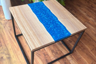 Witam. Posiadam na sprzedaż 2 stoliki kawowe z drewna jesionowego z wypełnienem żywicą epoksydową o wymiarach 60x60cm (600zł) i 80x60cm (800zł). Blaty wykończone lakierem.