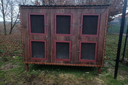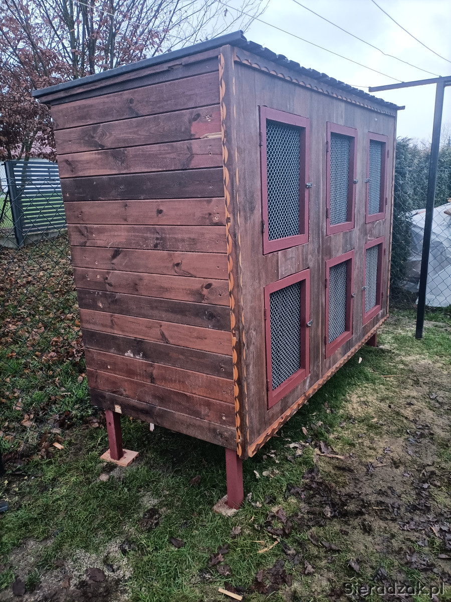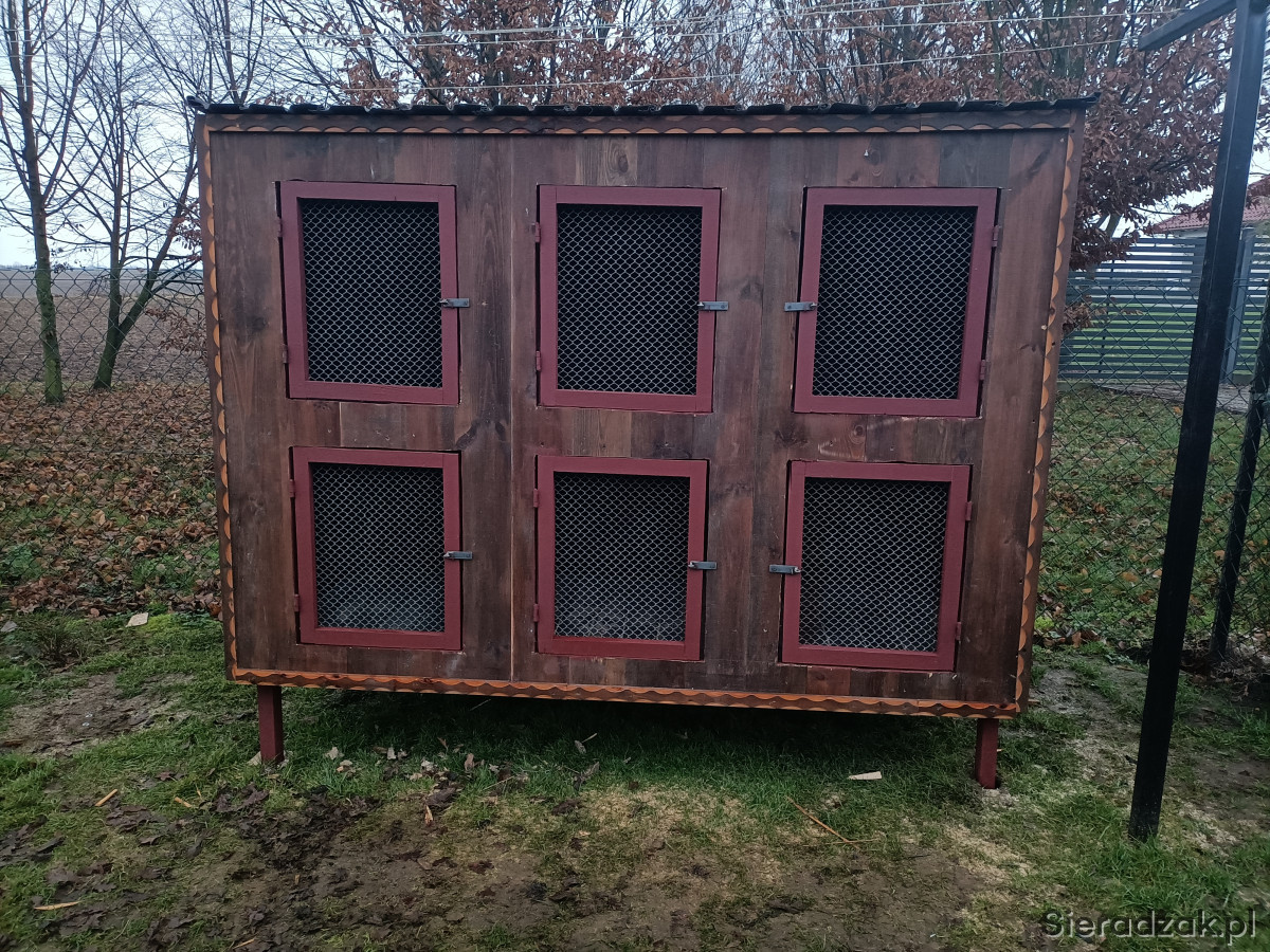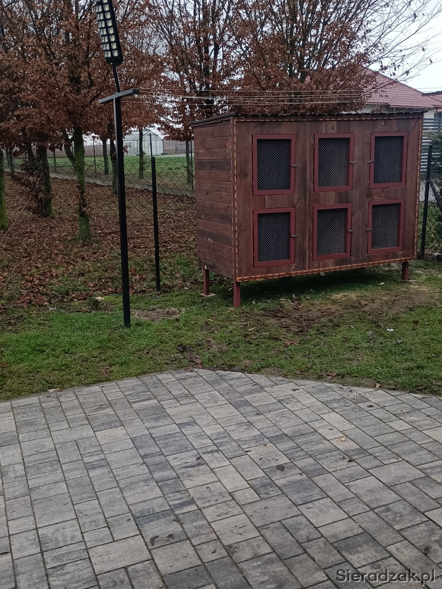 Sprzedam nową klatkę dla królików bądź innych gryzoni. W całości wykonana z solidnego drewna. Konstrukcja z drewna dębowego, obicie z deski felcowanej sosnowej. Dach pokryty deską felcowaną i dodatkowo panelem plastikowym. Dzięki temu zastosowaniu nie będzie latem wysokiej temperatury w klatkach. Klatka zaimpregnowana. Komory duże spokojnie zmieści się w jednej samica z małymi. Drzwiczki wykonane z ramy drewnianej i siatki ocynkowanej o małym oczku, przez co królik nie wyjdzie.
