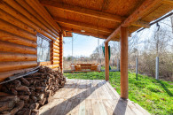 Dom z bala świerkowego ma powierzchnię zabudowy 33,64 mkw. Dach wykonany z blachy.