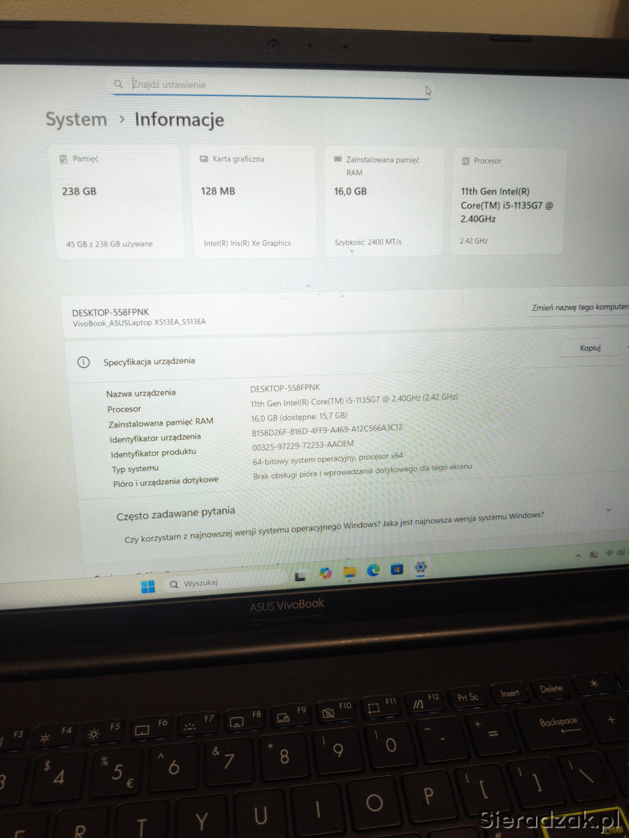 Na sprzedaż laptop premium Asus VivoBook 15, jest to świeży oraz szybki sprzęt ponieważ posiada procesor i5-11 generacji, 16GB Ram DDR4 oraz 256GB dysk SSD M2 Nvme.