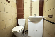 Duża i ustawna – na wyposażeniu pozostaje zabudowa kuchenna wraz z płytą gazową. Podłoga wykończona płytkami, na ścianach glazura.