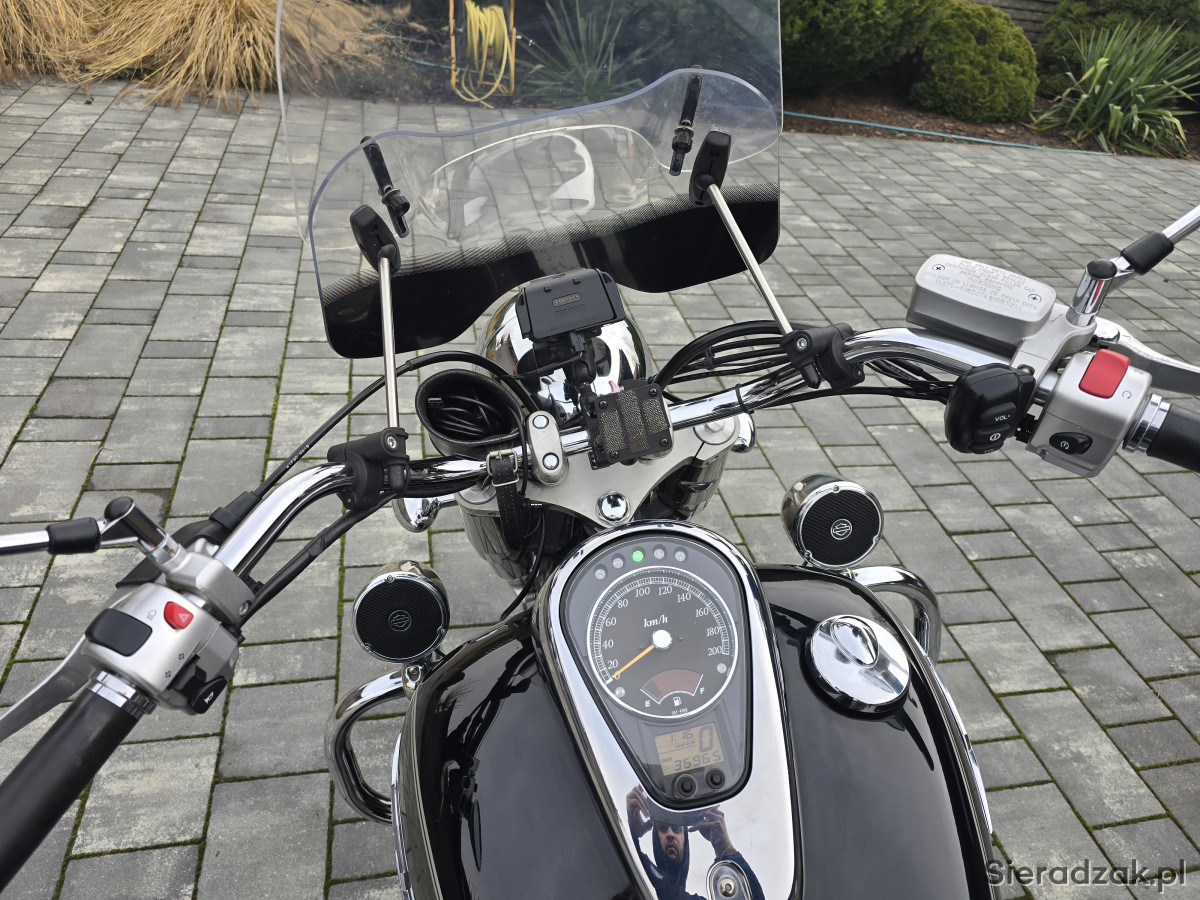 Motocykl wizualnie bardzo zadbany. Chromy i lakier w idealnym stanie. Brak jakichkolwiek rys czy odprysków. Mechanicznie wszystko w pełni sprawne. Silnik pracuje bardzo ładnie. Skrzynia, sprzęgło i hamulce działają bez zarzutu. Opony w bardzo dobrym stanie. Nowe klocki hamuclowe przód. Motocykl bardzo bogato wyposażony. Posiada m.in wydech SilverTail wraz z Dbkillerami, sakwy boczne Hepco&becker, oparcie pasażera Hepco&becker, gmole, szybę z deflektorem, głośniki ze sterowaniem przy kierownicy, uchwyt na kubek, podnóżki pasażera Highway Hawk, gniazdo zapalniczki, uchwyt do telefonu i nawigacji Tomtom. Kupujący zwolniony z opłaty skarbowej.