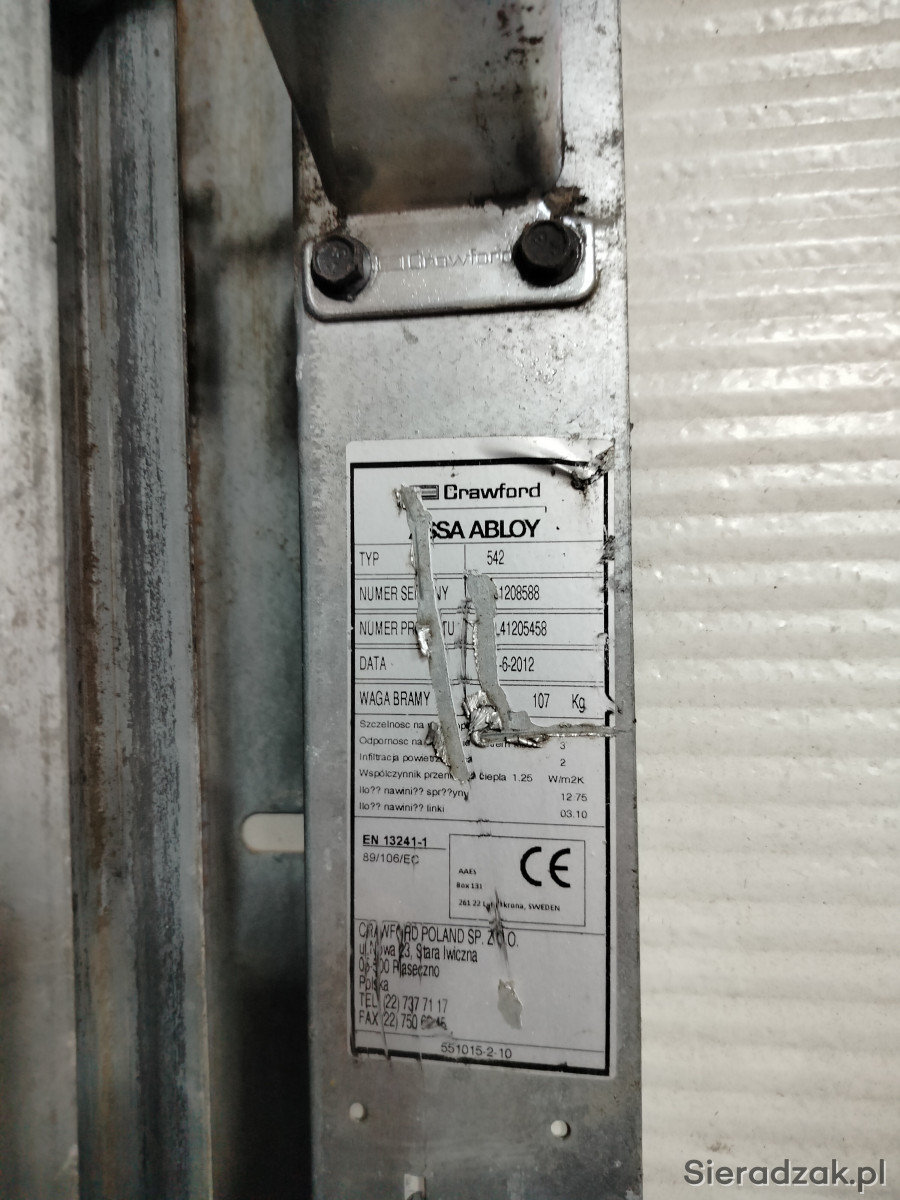 Witam, mam na sprzedaż używaną bramę przemysłową Crawford otwieraną pionowo