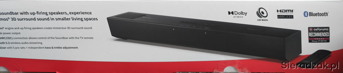 Sprzedam SOUNDBAR SHARP HT-SB700 Dolby Atmos . Stan idealny - mało użyty { nie trafiony zakup dlatego sprzedaje} Cena - 350 zł. Odbiór w Sieradzu { nie wysyłam } . Gdybym nie odbierał telfonu prosze pisac esemes.