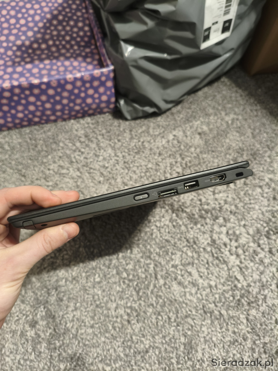 Posiada ekran o wielkości 13 cali FullHD dotykowy i obracany. Sprzęt jest w pełni sprawny technicznie oprócz jednego gniazda USB c drugie jest sprawne, stąd niższa cena, jest używany i ma ślady użytkowania.