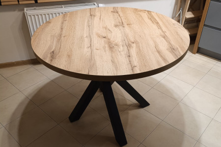Blat stołu wykonano z laminowanej płyty meblowej w kolorze dąb wotan.
