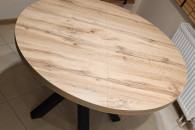 Blat o średnicy 100 cm na co dzień swobodnie pomieści 4 osoby. Po rozłożeniu przy stole usiądzie 6 osób.
