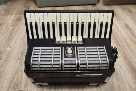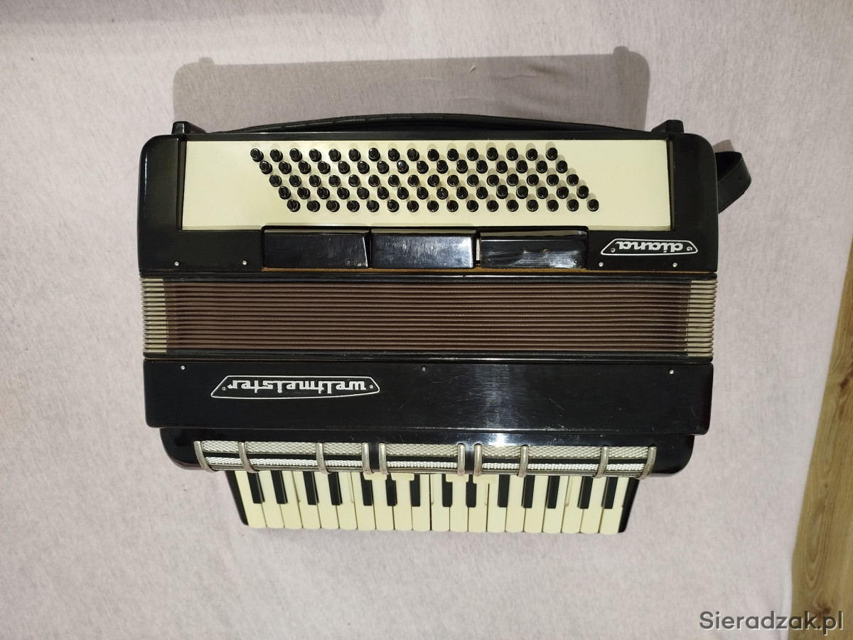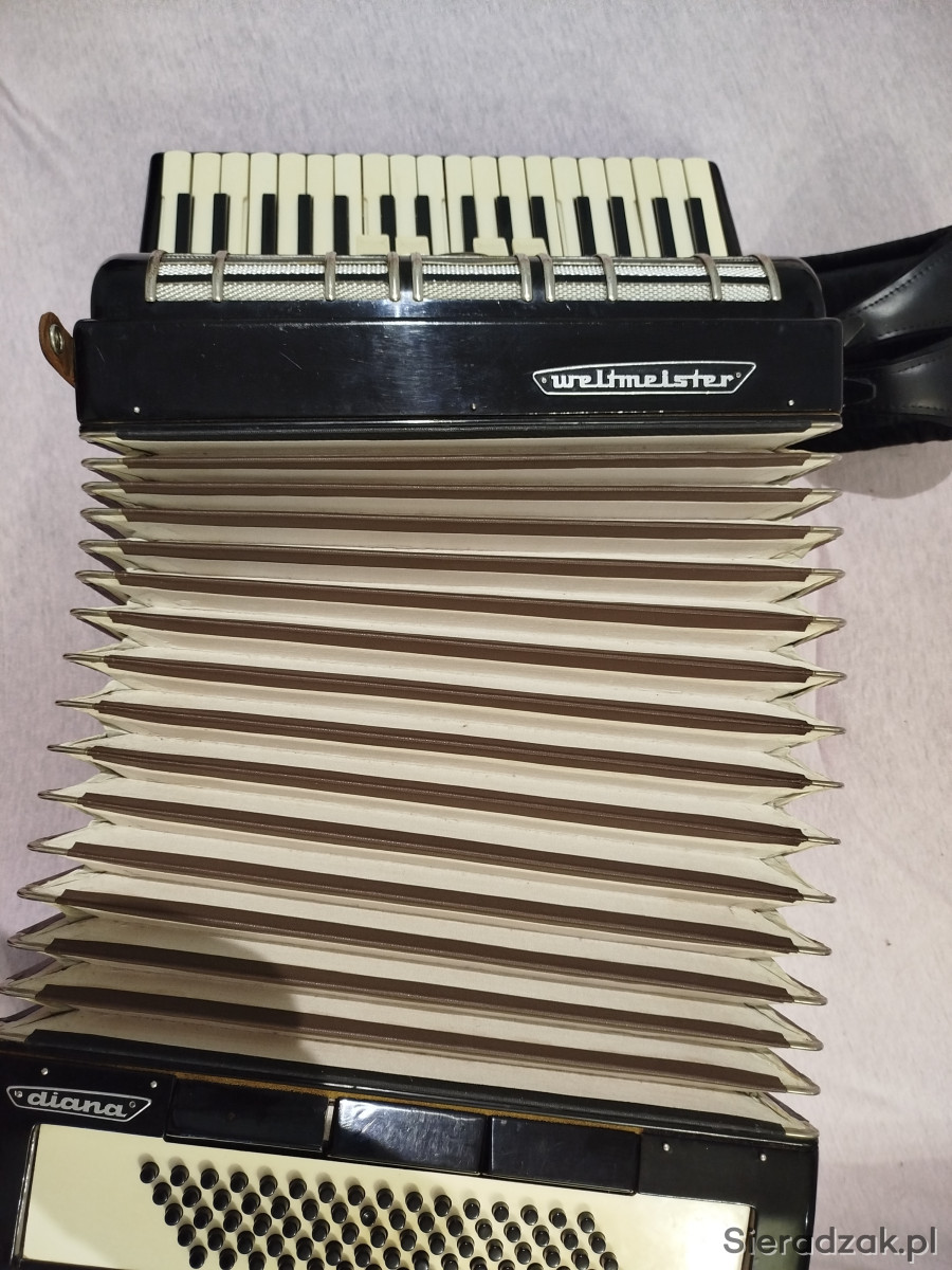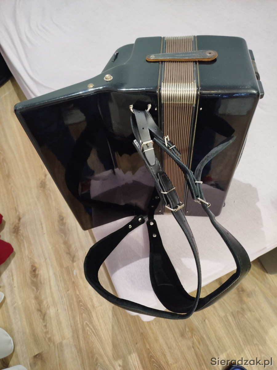Sprzedam akordeon renomowanej marki Weltmeister 80 basów model diana. 3-chórowy. Instrument w bardzo dobrym stanie, normalne ślady użytkowania. Czarny, fortepianowy kolor. Nie wymaga napraw ani strojenia. Miech szczelny. Kompresja bardzo dobra . Bardzo ładne brzmienie, lekki (8,5kg). Solidne, skórzane, szerokie pasy nośne. Brak futerału.Chętnych zapraszam do obejrzenia.
