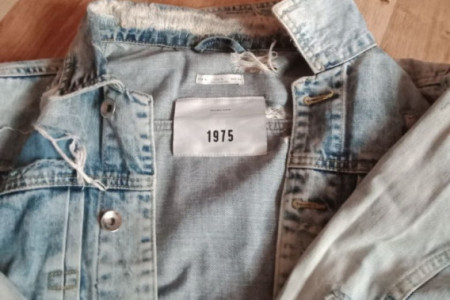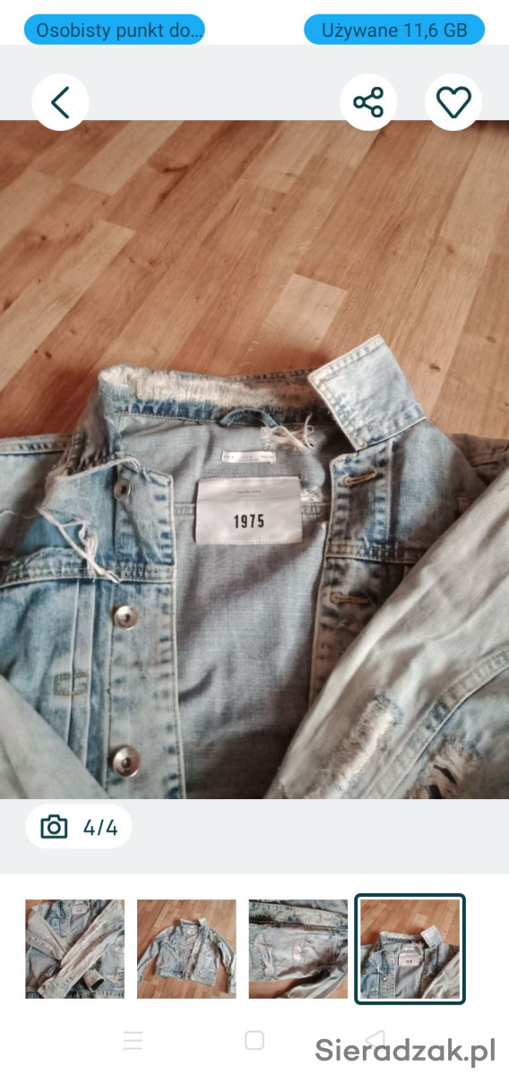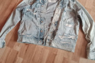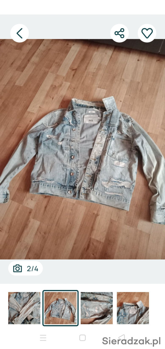 Przecierana jeansowa kurtka denim.Bardzo wygodna.Stan idealny.Z boku dwie kieszenie.Rozmiar uniwersalny.