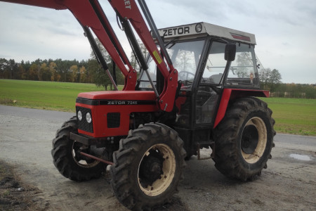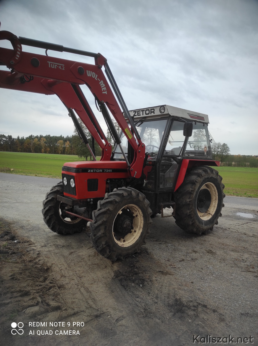 Witam mam do sprzedania ciągnik Zetor 7245 z nowym ładowaczem czołowym. Założone nowe opony przód i tył, nowe felgi, zregenerowany przedni most, nowe głowice, nowe błotniki, komplet zaczepów, nowy alternator, rozrusznik, pompa wody, oświetlenie, doinwestowany zapraszam do oględzin