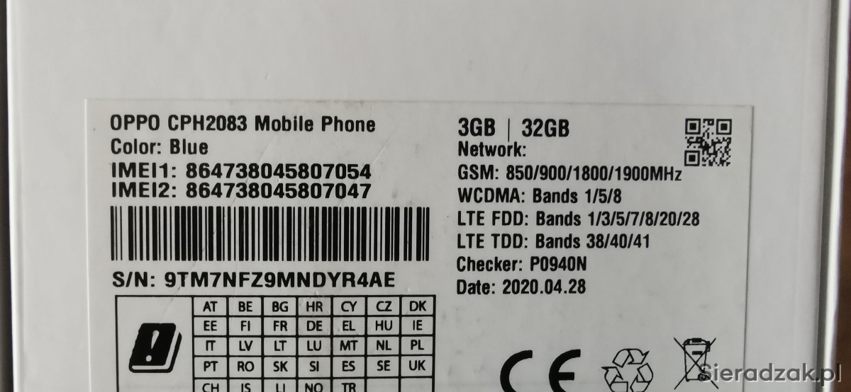 Witam, sprzedam w 100% sprawny telefon Oppo A12, kolor niebieski.
