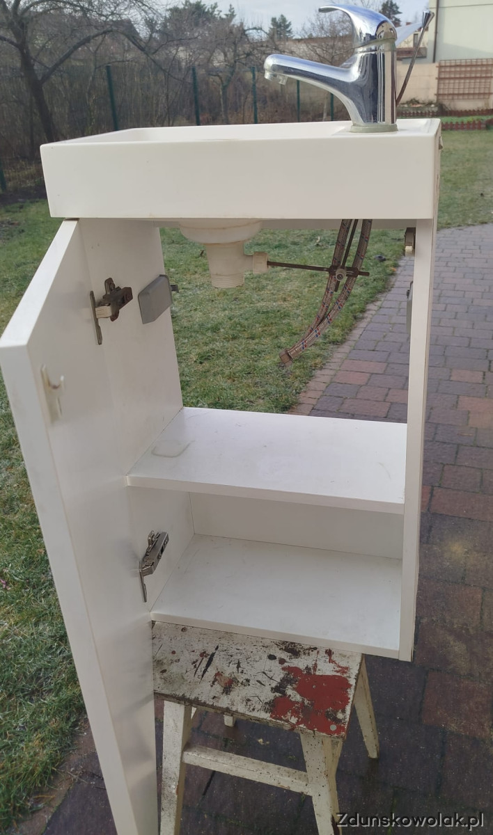 Oddam za darmo szafkę łazienkową wiszącą z umywalką i baterią.