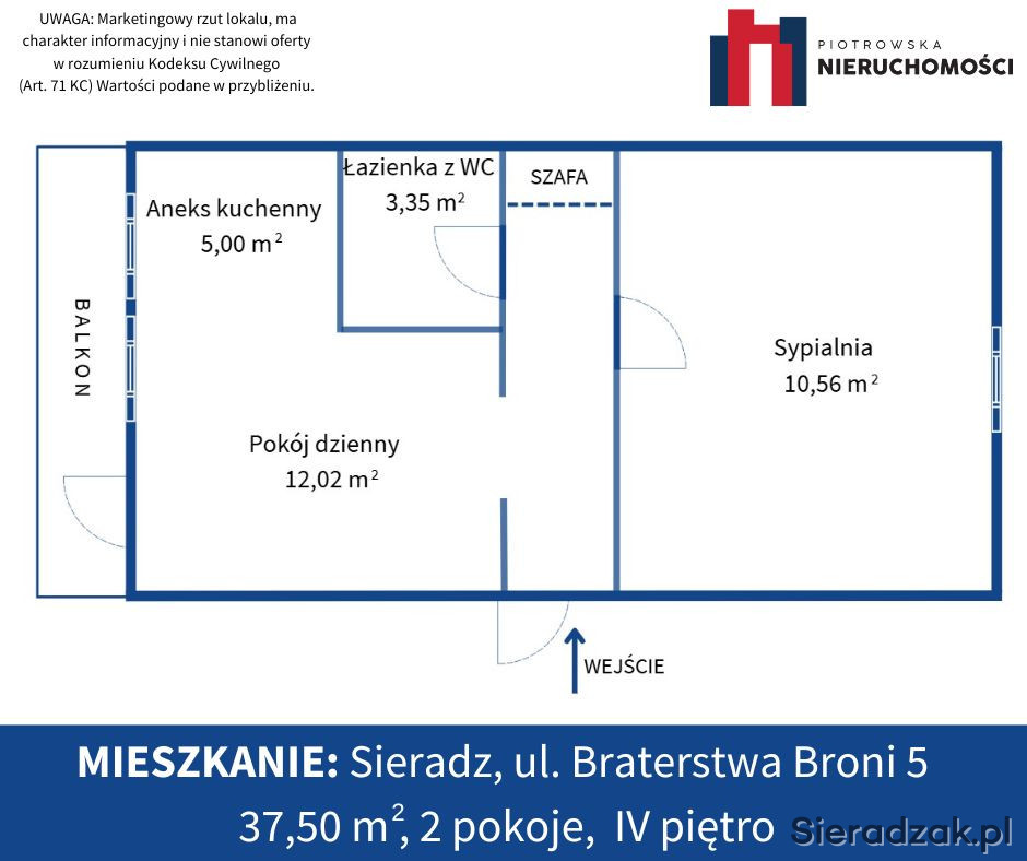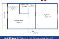 Bardzo słoneczne, dwustronne i rozkładowe mieszkanie o powierzchni 36,50 m², położone na IV piętrze w bloku przy ul. Braterstwa Broni 5 w Sieradzu.