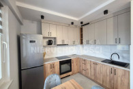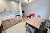 Pokój dzienny połączony z aneksem kuchennym wyposażonym w nową zabudowę mebli wraz AGD: lodówką, piekarnikiem, płytą indukcyjną, zmywarką.