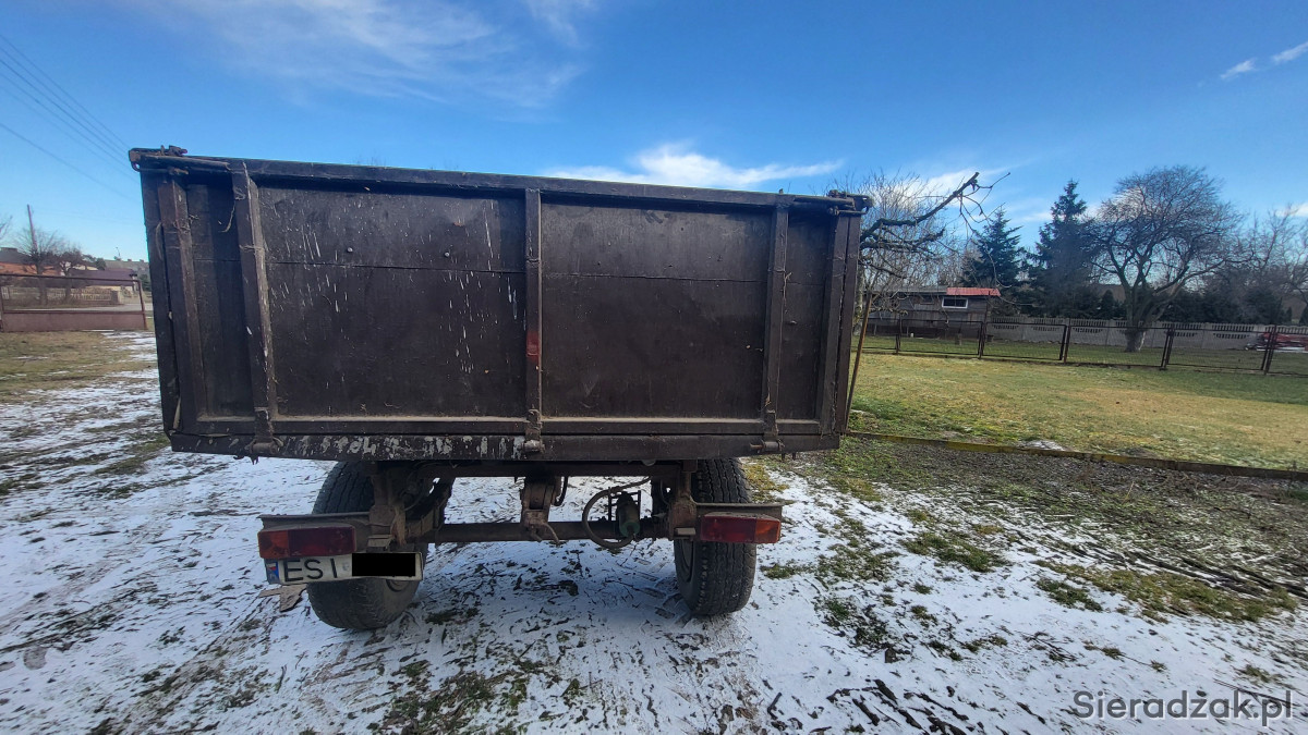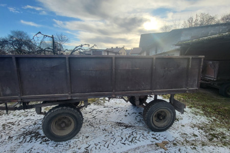 Przyczepa ciężarowa rolnicza D-45 o ładowności 3,5 tony. Przyczepa jest sprawna, ma podwyższone burty, jest zarejestrowana i ubezpieczona. Przegląd techniczny i ubezpieczenie OC ważne do czerwca 2026 roku. Sprawny wywrot na obie strony. Przyczepa użytkowana była tylko do zboża i jest garażowana.