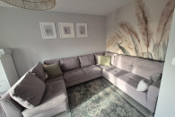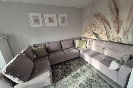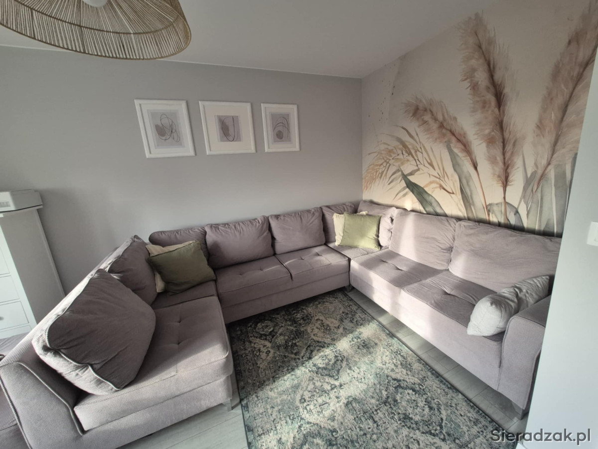 Sprzedam rogówkę w kształcie litery U z funkcją spania i pojemnikiem na pościel . Możliwość dopiecia pufy do rogówki
